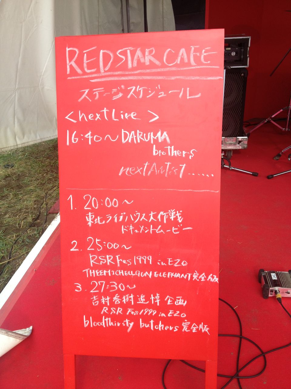 今年亡くなってしまった吉村秀樹。追悼・吉村秀樹企画として、1999年に行われた初めてのRSRに出演したbloodthirsty butchersの映像をみんなで見ようという会がRED CAFE横のステージでありました。